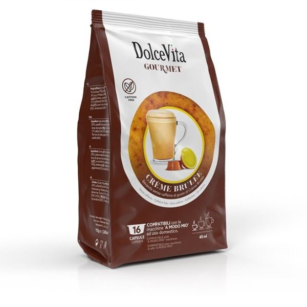 Preparato solubile al gusto di crème brûlée. Una bevanda gustosa dal tipico sapore di crema abbrustolita.