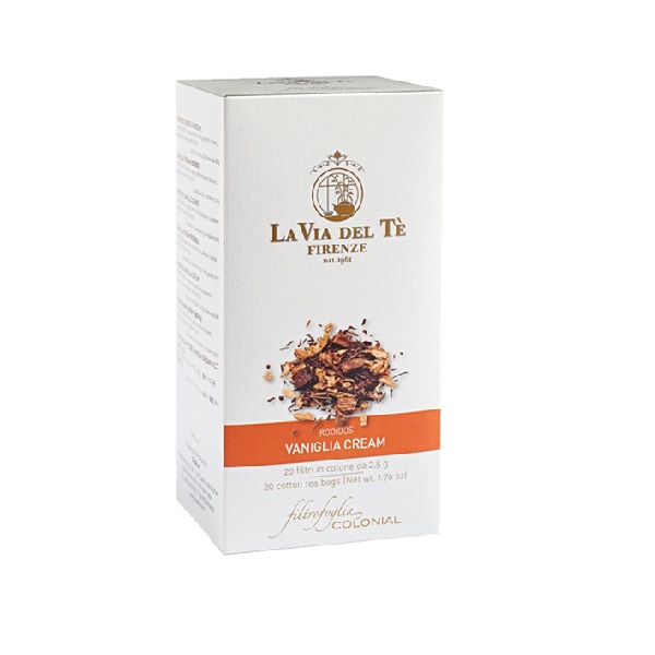 Infuso d’erbe in filtri. Profumata miscela di Rooibos dal profumo dolce di vaniglia.